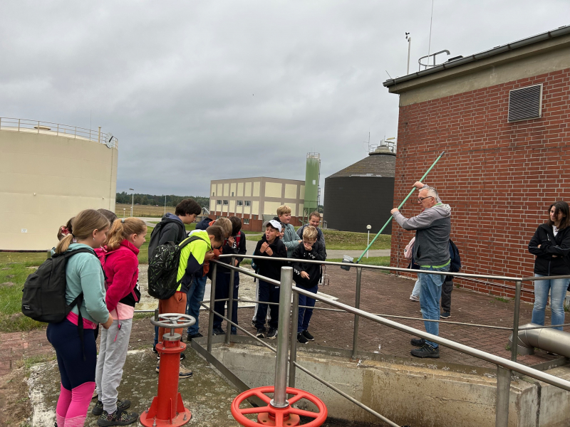 Am 18.09. beendete die Klasse 4 das Thema "Wasser und Abwasser" aus dem Sachunterricht mit einem Besuch auf der Kläranlage Stendal. Dabei führte uns der Leiter der Abteilung, Herr Riske, mit viel Elan und Wissen über die Anlage und zeigte den Kindern all die Stationen der Wasseraufbereitung, die sie im Unterricht nur in der Theorie kennengelernt hatten. "Das habe ich mir ja ganz anders vorgestellt!", war nur eine der vielen Erkenntnisse der Schülerinnen und Schüler.